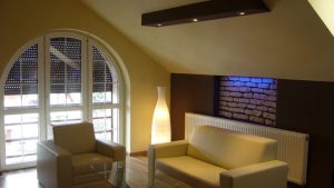 Pamiętajmy, że bardzo jasne, sztuczne światło pobudza do pracy i koncentracji. Natomiast przyciemnione sprzyja wypoczynkowi. Poza tym, im więcej źródeł światła, tym lepiej – większa jest wtedy możliwość kształtowania przestrzeni.
