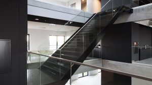 Wnętrze nawiązuje klimatem do produkcji przemysłowej. Nowoczesne biuro posiada dużą otwartą przestrzeń w środku budynku, na ścianach zastosowano surowy beton. Architekci wnętrz zaproponowali we wnętrzu wykończenie z materiałów takich jak nieobrobione drewno dębowe, czarne ściany oraz meble, specjalnie zaprojektowane dywany, szare sufity akustyczne. W budynku mieści się także duża klatka schodowa łącząca kondygnacje budynku.