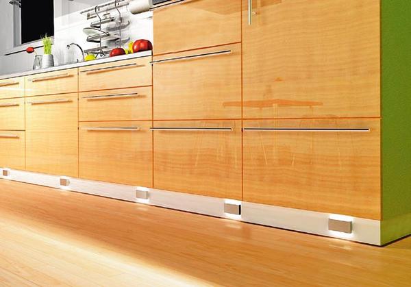 Do oświetlenia dekoracyjnego w aranżacji kuchni najczęściej stosuje się oprawy halogenowe lub diody LED. Pojedyncze oprawki z diodami LED można rozmieścić pod ciągiem szafek w kuchni w takich odstępach, aby uzyskać równomierne oświetlenie całego blatu. Podobny efekt może dać przymocowanie pod szafkami kuchennymi listwy z diodami LED. Dobierając do kuchni oprawy punktowe oraz listwy, należy pamiętać o kilku ważnych zasadach: