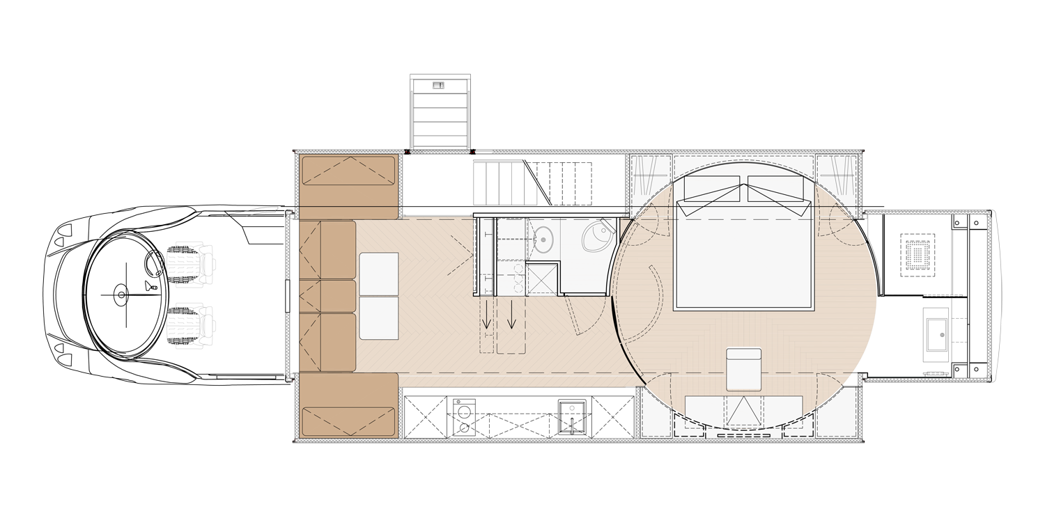 Uderzający wygląd kabiny jest ponadczasowy i została wyprodukowana z niezwykłą precyzją przy użyciu materiałów z wysokiej jakości włókna węglowego. Jego stylistyka nawiązuje do samochodów sportowych, a 36-calowe felgi wzorowane są na najnowszych samochodach wyścigowych. W kabinie pojazdu znajduje się cyfrowe centrum sterowania inspirowane kokpitami samolotów odrzutowych, z funkcjonalnością luksusowych limuzyn. Panoramiczne szyby, (niczym jak w helikopterze) mogą być przyciemnione w dwóch etapach za pomocą regulowanego układu ochrony przeciwsłonecznej.