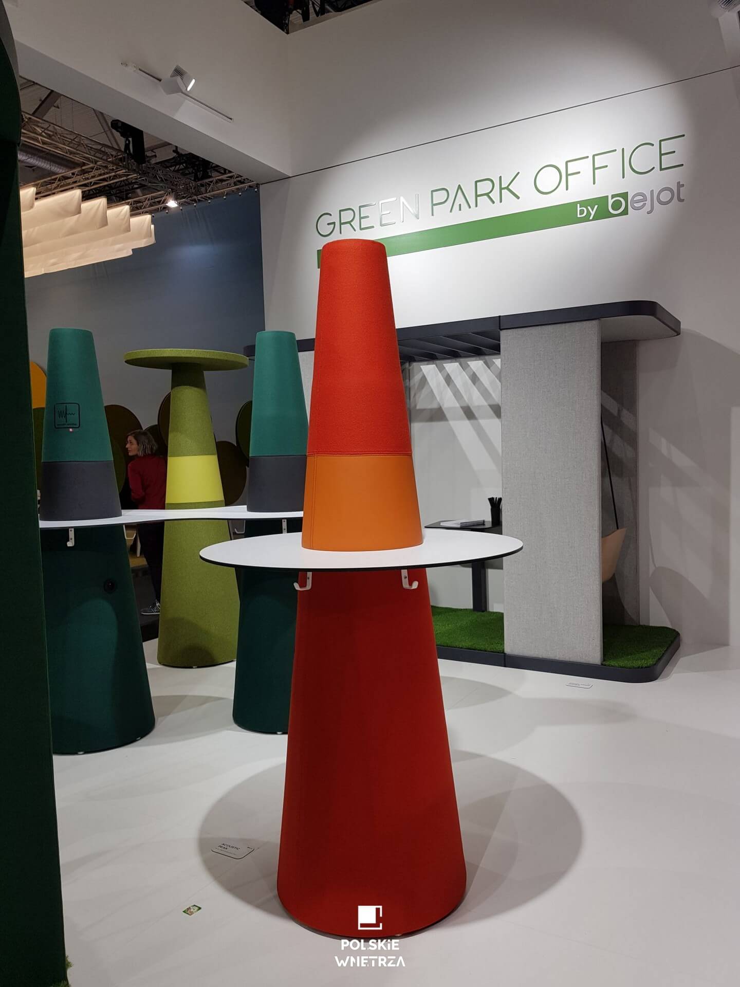 Bliskość natury i klimat parku w biurze zaprezentowało także niezwykle kolorowe i designerskie stoisko firmy Bejot „Green Park Office”. Szczególną uwagę przyciągały podwieszane fotele SOCIAL SWING. O miłośników kolorów zadbał również Profim. Marka udowodniła, jak istotny wpływ na użytkowników pomieszczenia ma jego kolorystyka, np. żółty potęguje efekt przytulności i wnosi atmosferę hospitality. Zaprezentowane czerwienie, błękity, żółcie, fiolety i czerń miały pomóc uczestnikom targów odnaleźć swój kolor, tak, by w pracy czuć się równie komfortowo jak w domu. Innowacyjne i stylowe rozwiązania przedstawiła również marka NOTI. Jej nowe kolekcje ONA i MENO projektu Studio Ganszyniec oraz LOPP projektu studia Pawlak & Stawarski, zabrały nas do świata wymarzonego miejsca pracy.
